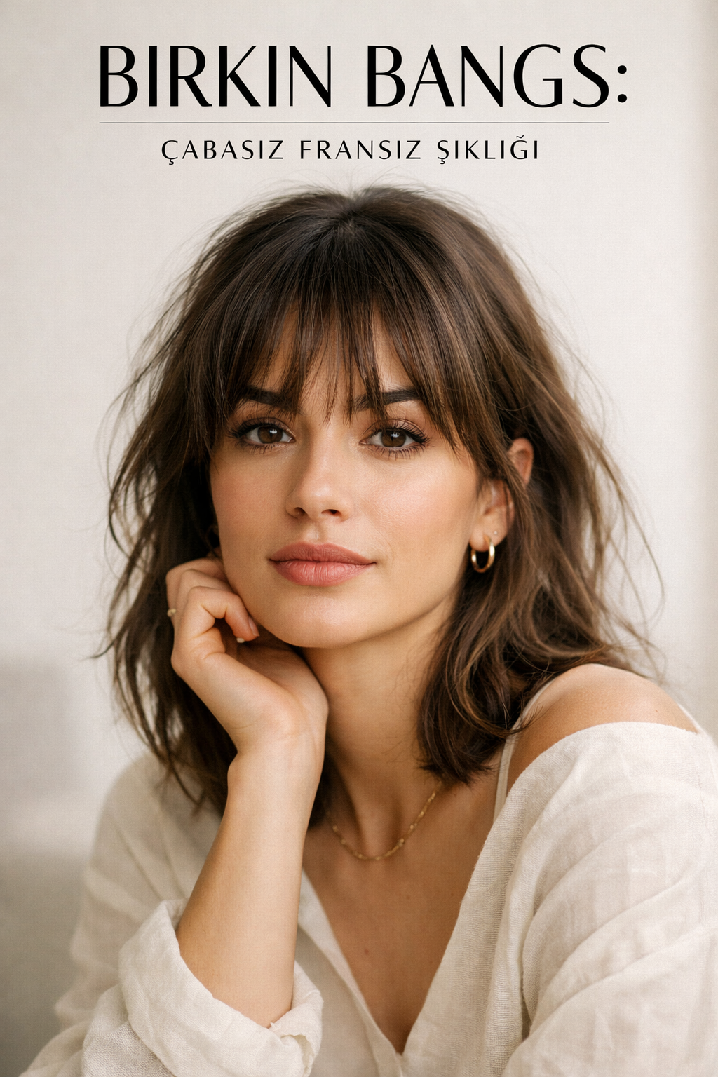 4. Birkin Bangs (Birkin Perçemleri): Kaş hizasında, hafif dağınık ve doğal görünümlü bu Fransız stili perçemler, yüzünüze yumuşak bir çerçeve sunar. Velat Özdamar, bu perçemleri yüz şeklinize özel olarak tasarlayarak çabasız bir şıklık vadediyor.